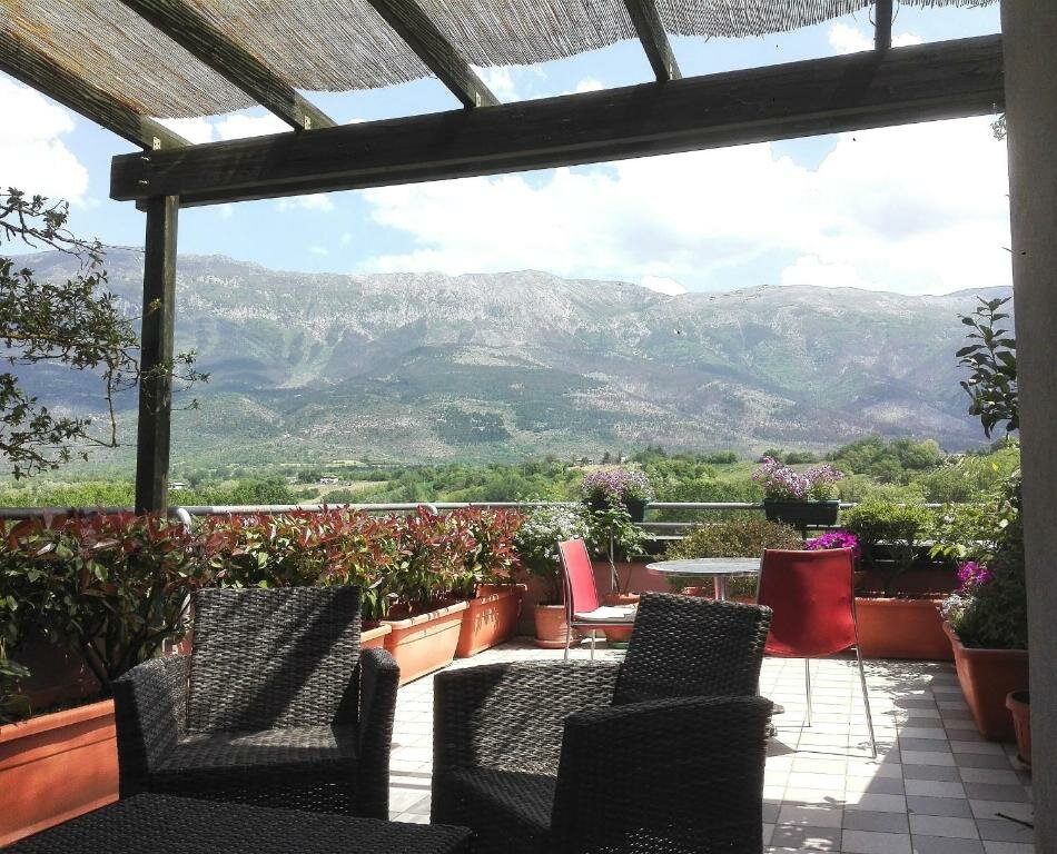 All’esterno ci sono due ampi terrazzi coperti con splendida vista sulle montagne abruzzesi.