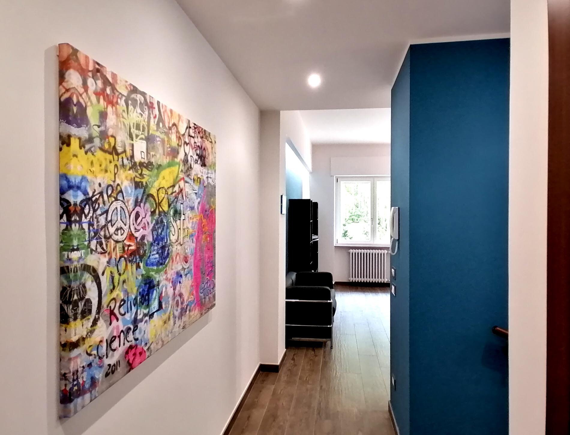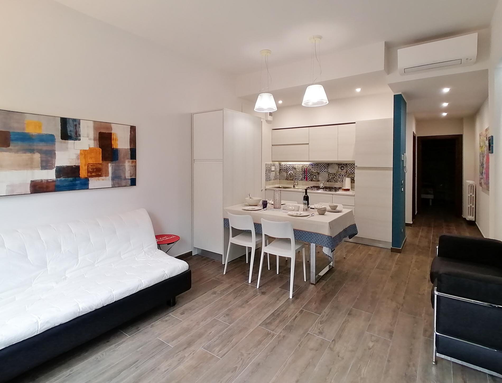 Il CIVICO 62 è un nuovissimo appartamento di circa 50 mq. posto al piano rialzato di una casa unifamiliare con ingresso indipendente. È composto da un'ampia zona living con divano letto, tv e cucina attrezzata, completano l'appartamento una spaziosa camera da letto e un bagno con doccia e lavasciuga.